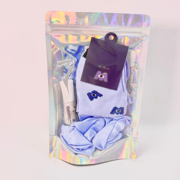 COMBO BOLSA AZUL (VELO – ESMALTE -MOÑA SCRUNCHIE – MEDIAS)